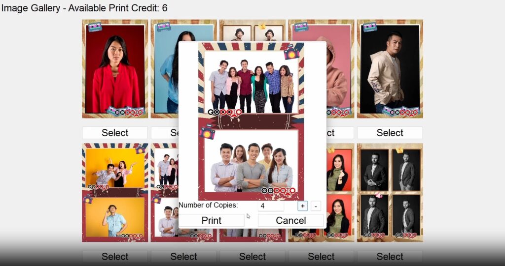 Selanjutnya layar akan menampilkan 10 foto terakhir. Pengunjung dapat memilih foto mana saja yang akan di cetak ulang, sesuai dengan jumlah yang telah dipilih di awal.